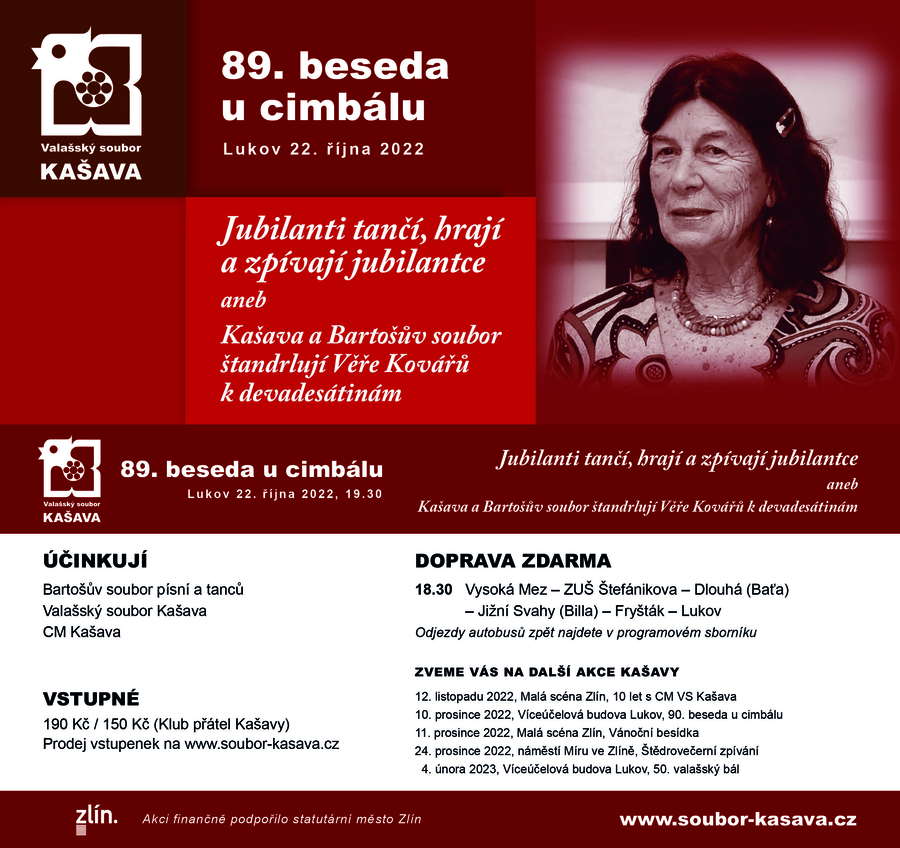 Jubilanti tančí, hrají a zpívají jubilantce aneb Kašava a Bartošův soubor štandrlují Věře Kovářů k devadesátinám